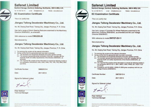 泰隆減速機(jī)認(rèn)證證書